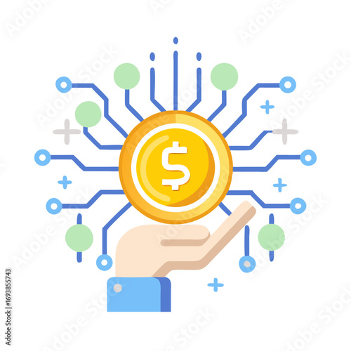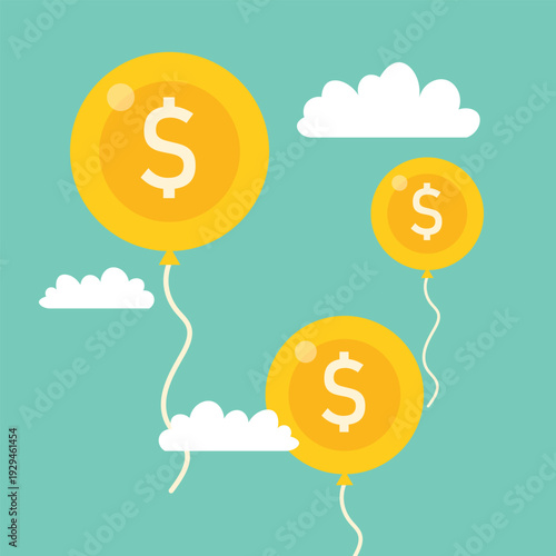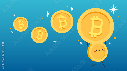 Векторная иллюстрация концепции ICO или первоначального предложения монет. Бизнесмен, держащий биткоин, вопросительный знак над головой и воздушные шары с надписью ICO или лопающиеся воздушные шары.