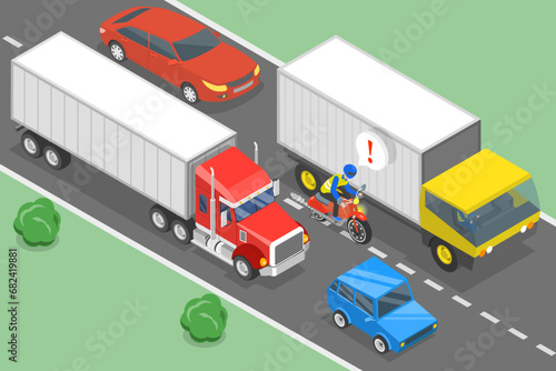 Изометрическая сцена незаконной парковки. Дорожный полицейский выписывает штраф за парковку автомобилю в зоне, где стоянка запрещена, и отбуксирует знак "Парковка запрещена" векторная иллюстрация