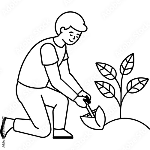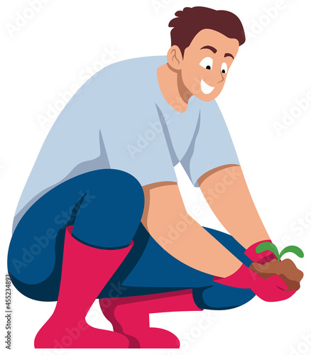 Индийский мужчина-фермер, выращивающий растения, векторная иконка на изолированном фоне.
