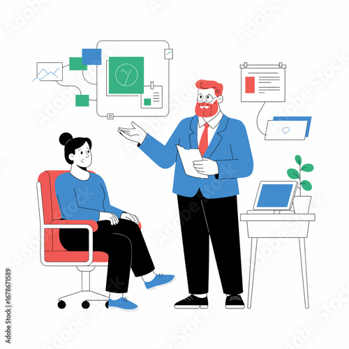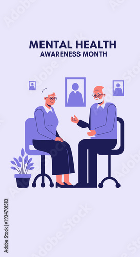 Векторная плоская иллюстрация сеанса психотерапии. Психотерапевт консультирует пациента, имеющего проблемы с психическим здоровьем. Концепция индивидуальной терапии для веб-баннера, страницы веб-сайта и т.д.