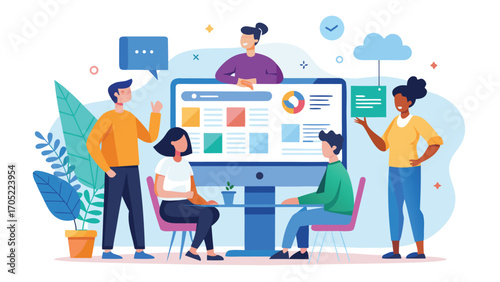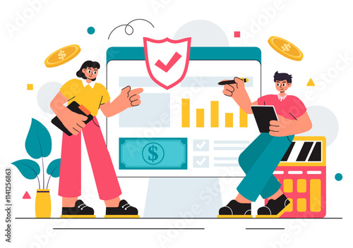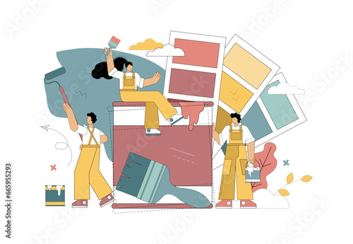 Векторная иллюстрация промышленной роботизированной руки, поднимающей посылку с конвейерной ленты и размещающей ее на новом месте, рабочие. Автоматизация производства, выбор и размещение концепций роботов для веб-баннера, веб-страницы.
