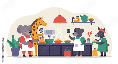 Векторная иллюстрация промышленной роботизированной руки, поднимающей картонную коробку с конвейерной ленты, и заводских рабочих, занятых своей работой. Роботизированная концепция автоматизации выбора и размещения веб-баннера, веб-страницы.