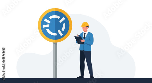 Векторная иллюстрация концепции первоначального предложения монет. Бизнесмены надувают воздушный шар с надписью ICO.