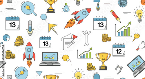 ICO или первоначальное предложение монет по бесшовной схеме. Векторный современный плоский дизайн с тонкой линией.