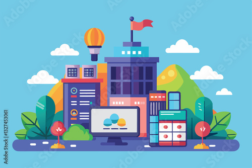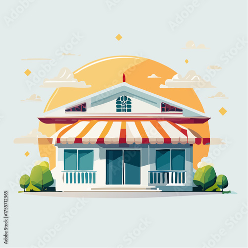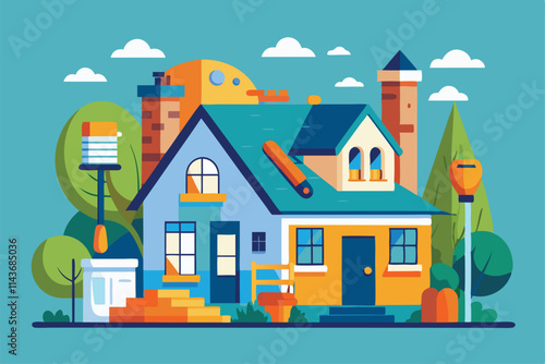 Векторная иллюстрация дизайна в плоском стиле концепции страхования. Дом под зонтиком, глобус, деньги, контракт и спасательный круг. Плакат о страховании дома, баннер.