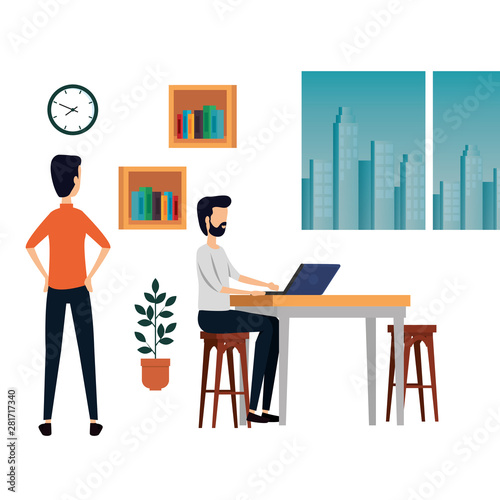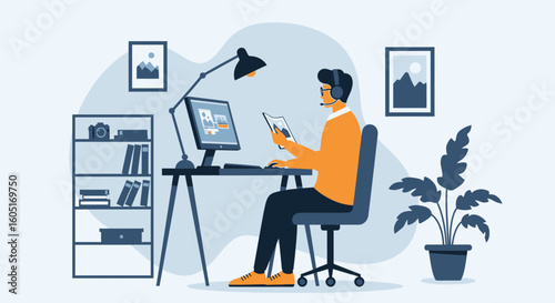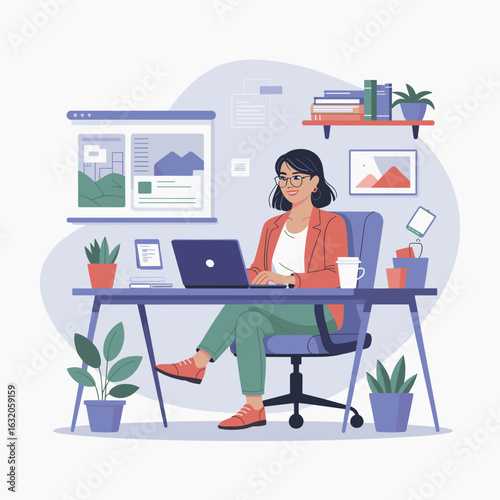 Дизайнер интерьера расставляет мебель для гостиной на экране компьютера, векторная плоская изометрическая иллюстрация. Творческое художественное профессиональное рабочее место. Онлайн-услуги по дизайну интерьера.