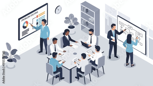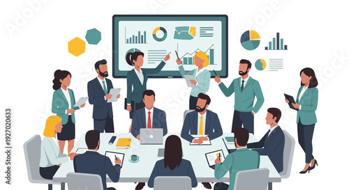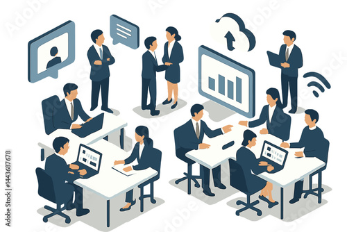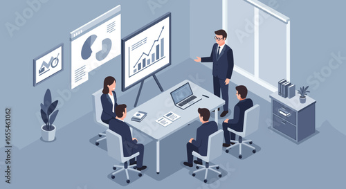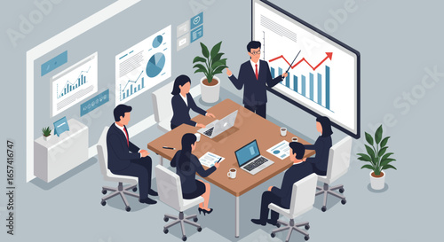 Международная встреча с арабскими деловыми людьми, инвесторами в зале заседаний, плоская векторная изометрическая иллюстрация. Концепция арабских инвестиций.