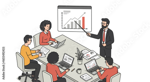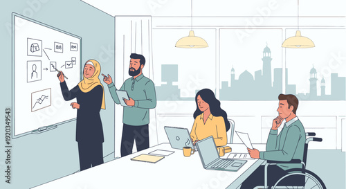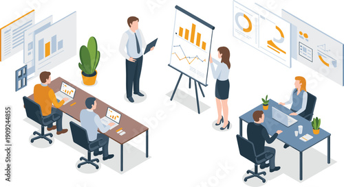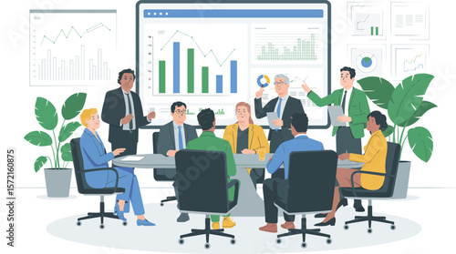 Международная встреча с арабскими бизнесменами, инвесторами в зале заседаний, плоская векторная изометрическая иллюстрация. Концепция арабских инвестиций.