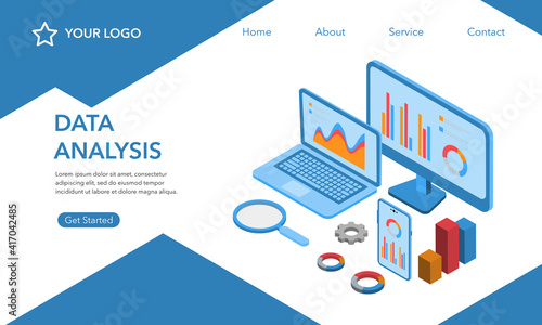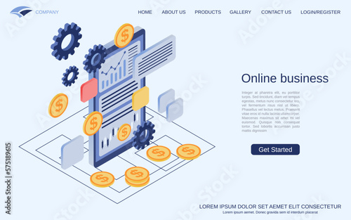 Шаблон веб-сайта целевой страницы Интернета вещей. Векторная изометрическая интеллектуальная бытовая техника и другие устройства, управляемые смартфоном. Беспроводная технология "умный дом", домашняя автоматизация или концепция Интернета вещей