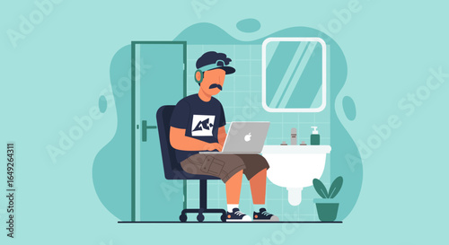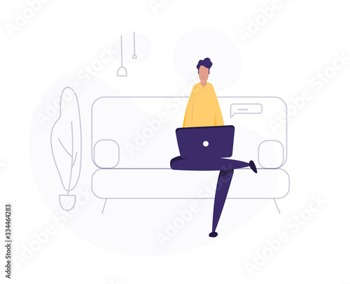 Векторная иллюстрация человека, отправляющего любовные сообщения электронной почты с помощью смартфона, сидя на скамейке в парке. Концепция мобильного интернета. Элемент дизайна в плоском стиле интернет-людей, изолированный на белом фоне.