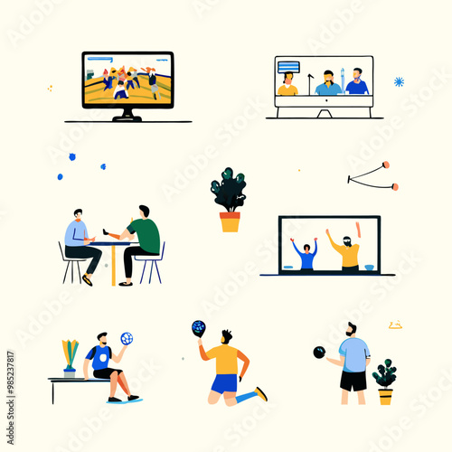 Интернет-радио, набор векторных иллюстраций, изолированных на белом фоне. Онлайн-радио, концепция создания и прослушивания подкастов для страницы веб-сайта, веб-баннера и т.д.