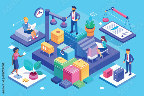 Инвестирование в топливную блок-схему, векторная изометрическая иллюстрация. Добыча нефти, переговоры и подписание инвестиционного соглашения. Инвестирование в нефтяные и газовые компании. Нефтяная промышленность.