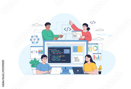 Векторная иллюстрация концепции инвестиций в биткойн. Глобус на ладони, компьютер, ноутбук со знаком биткоина, буфер обмена с контрактом, деньги. Онлайн-финансирование и инвестирование в криптовалютный плакат-баннер.