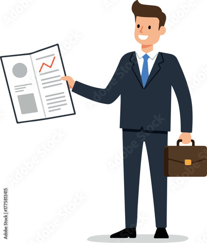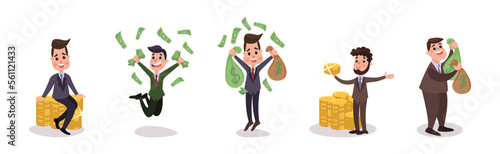 Векторная иллюстрация уверенного бизнесмена-инвестора с деньгами. Творческая команда людей элемент дизайна в плоском стиле, значок, изолированный на белом фоне.