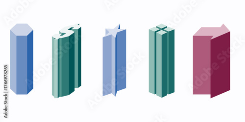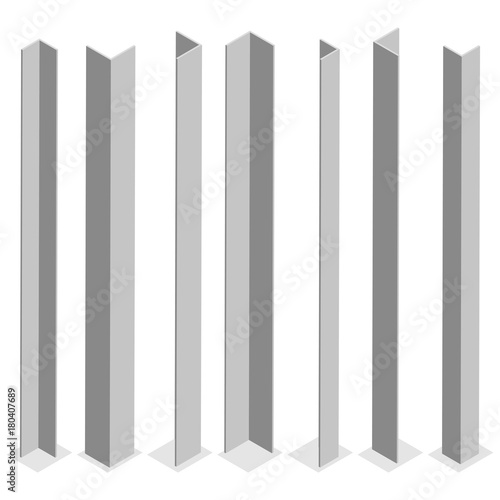 Макет железного профиля, конструкционный набор металлических балок, выделенный на белом фоне. Разнообразие форм материалов для металлургии и строительной промышленности для векторной иллюстрации арматуры