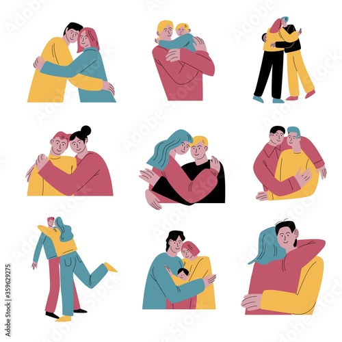 Изолированный набор персонажей любящей пары, ожидающих родов. Муж обнимает беременную жену векторная иллюстрация. Концепция беременности и счастливых семейных отношений