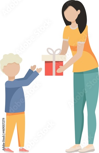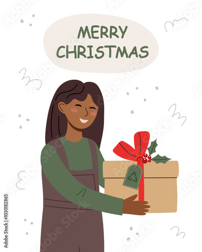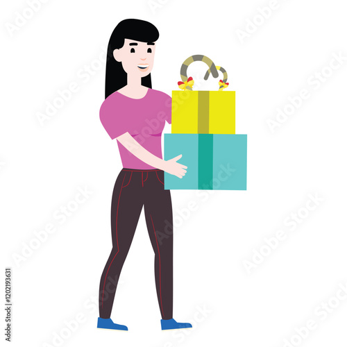 Изометрическая женщина с ампутированной конечностью и искусственной рукой, держащая в руках подарочный вектор. Пострадавший с протезом, люди с ограниченными возможностями, 3d-иллюстрация, изолированная на белом фоне
