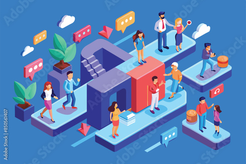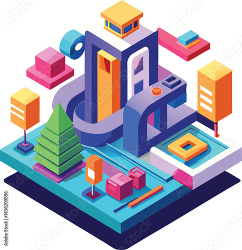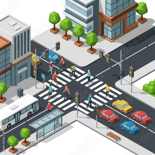 Автобусная остановка. Мужчина-инвалид в инвалидной коляске покидает городской автобус, используя пандус для доступа инвалидных колясок, плоская векторная изометрическая иллюстрация. Образ жизни инвалида. Доступность городского общественного транспорта.