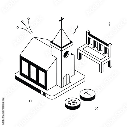 Изометрическое здание суда, стоящее на книге законов, весы правосудия, молоток, плоская векторная иллюстрация. Арбитражный суд. Закон и правосудие.