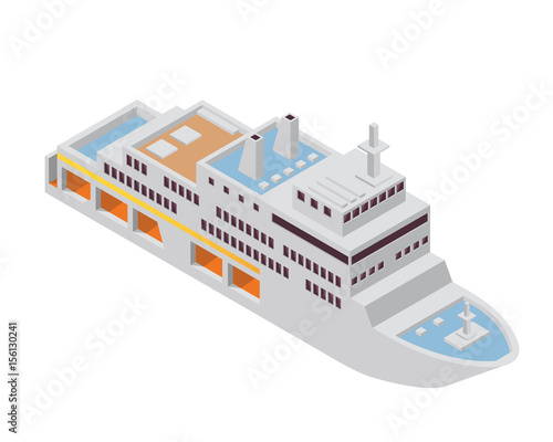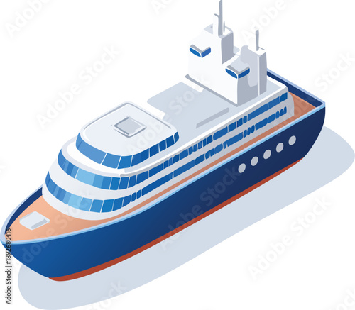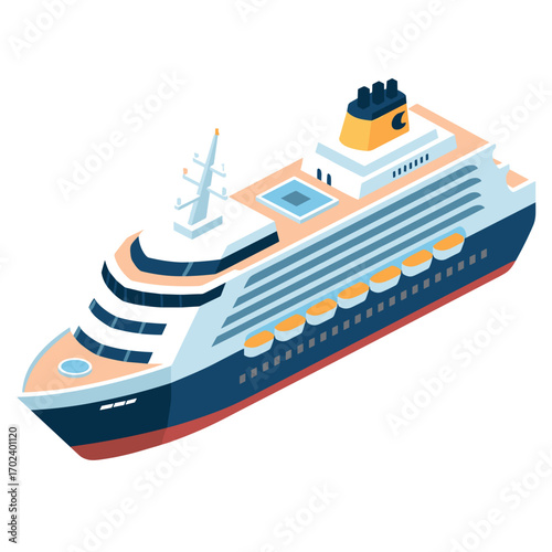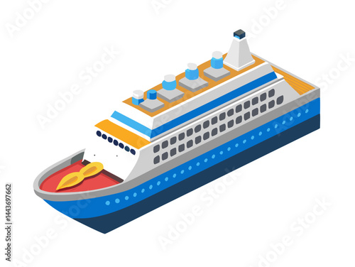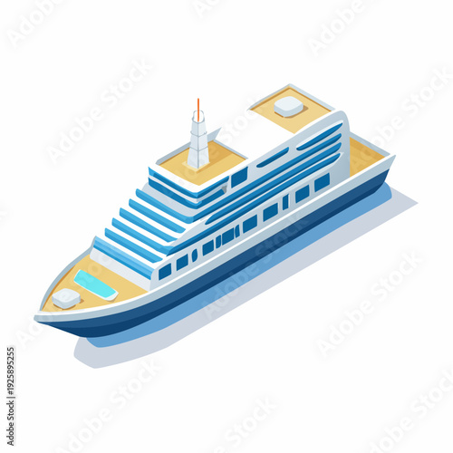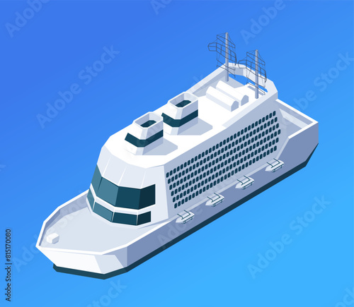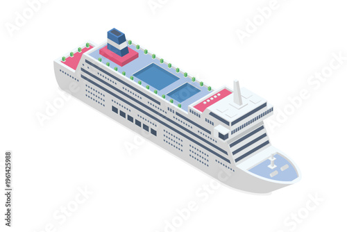 Изометрическая векторная иллюстрация круизного лайнера. Современный пассажирский линейный крейсер, выделенный на белом фоне. Водный транспорт для морских путешествий