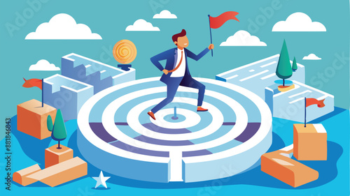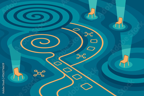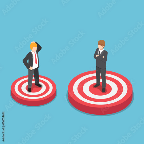 Изометрические счастливые спортсмены-инвалиды, победители гонок, стоящие на пьедестале почета, плоская векторная иллюстрация. Победители марафонских гонок с бионическим протезом ноги празднуют победу. Образ жизни инвалида.