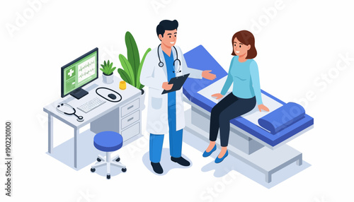 Изометрический врач, пациент со сломанной рукой и ногой, полис медицинского страхования со щитом, плоская векторная иллюстрация. Концепция медицинского страхования.