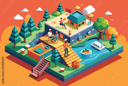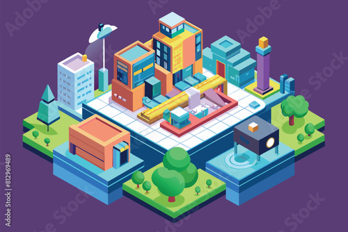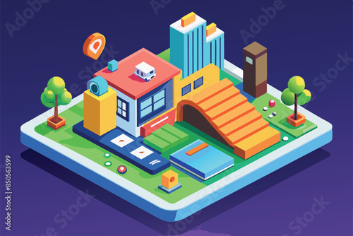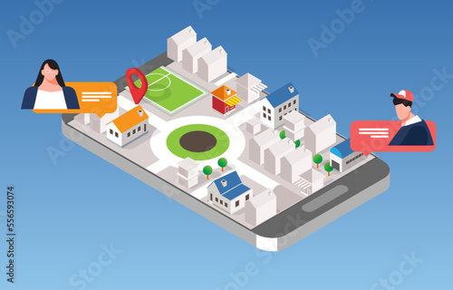 Умная ферма, теплица с дистанционным управлением с роботизированными машинами на экране смартфона, плоская векторная изометрическая иллюстрация. Интернет вещей, технологии искусственного интеллекта в сельском хозяйстве.
