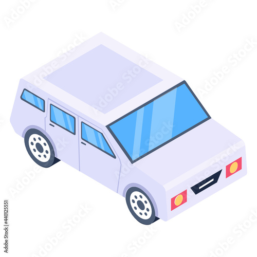 Изометрический ретро-автомобиль. Классическая модель городского транспорта в формате 3d, выделенная на белом фоне. Векторная иконка старинного автомобиля