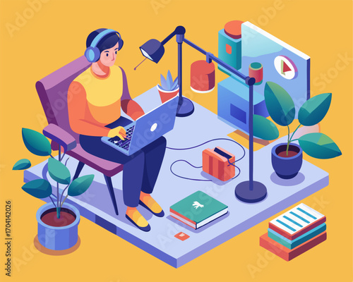 Онлайн-голосование. Изометрический смартфон с политическим кандидатом за трибуной, урна для голосования, городские здания на экране, статистика, векторная иллюстрация. Электронная избирательная система, мобильное приложение для электронного голосования.
