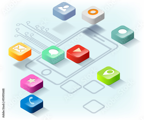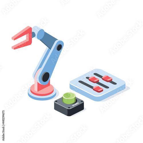 Изометрический смартфон с голосовым управлением цифровым роботом-помощником, векторная иллюстрация. Чат-бот с искусственным интеллектом. Интеллектуальные технологии распознавания голоса Soundwave.