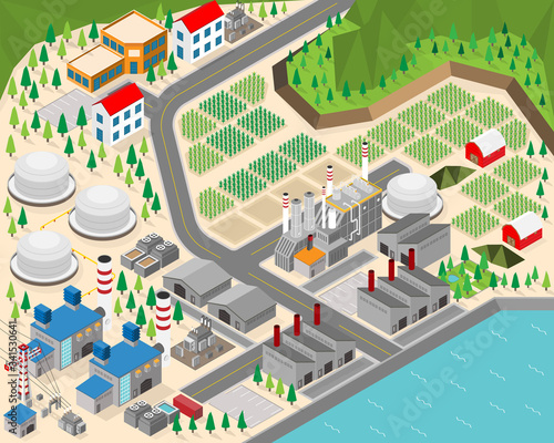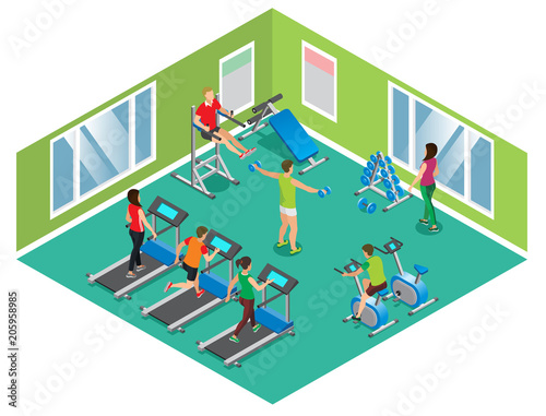 Изометрический теннисный стадион с открытым кортом и трибуной, плоская векторная иллюстрация. Спортивная площадка с игроками и болельщиками, наблюдающими за теннисным матчем, элемент инфографики.
