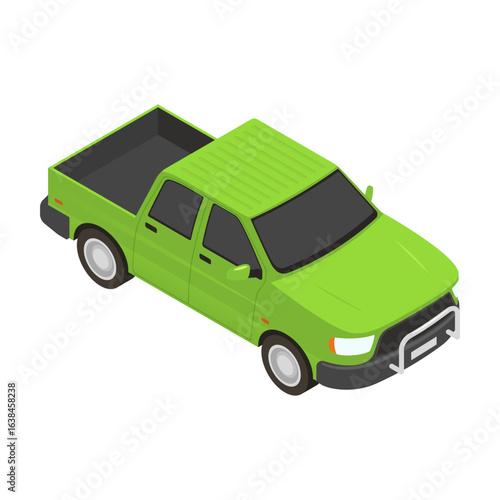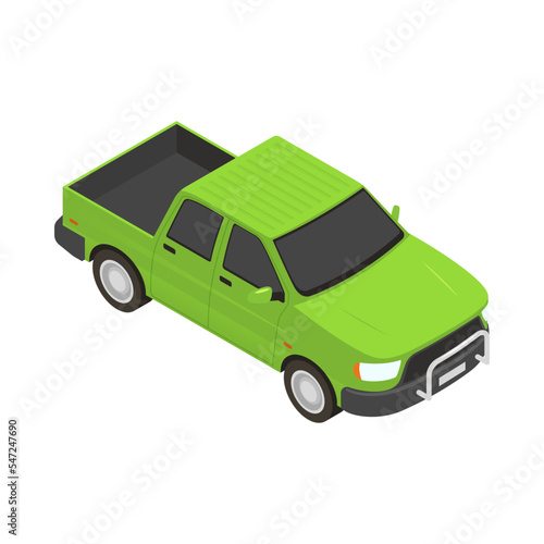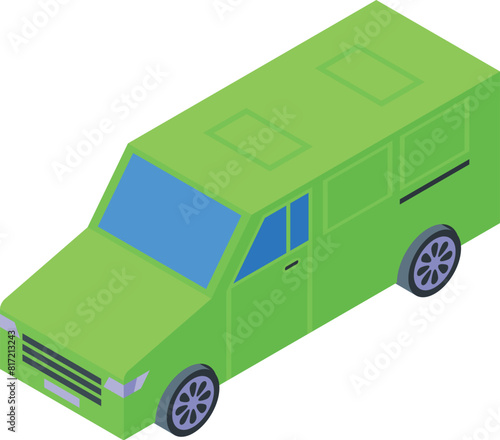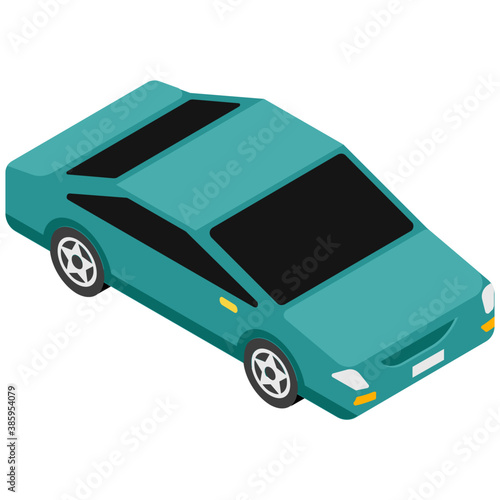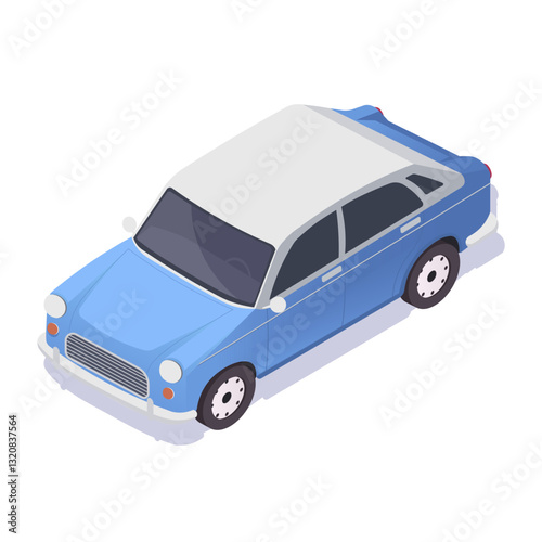 Изометрический винтажный зеленый автомобиль. Векторное транспортное средство, 3d-авто, выделенное на белом фоне. Значок ретро-автомобиля. Городской автомобильный транспорт