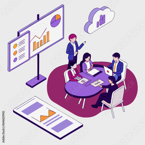 Изометрический официант с протезом ноги и слуховым аппаратом, подающий еду на серебряном блюде или ресторанном клоше, плоская векторная иллюстрация. Молодой парень-инвалид, работающий в ресторане. Образ жизни людей с ограниченными возможностями.