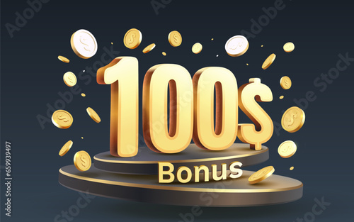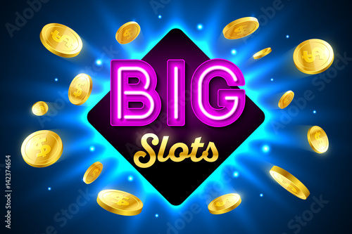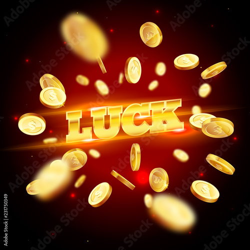 Векторный плакат азартных игр с джекпотом, шаблон баннера. Победитель джекпота казино или лотереи светящийся фон с реалистичными 3d золотыми долларовыми монетами.