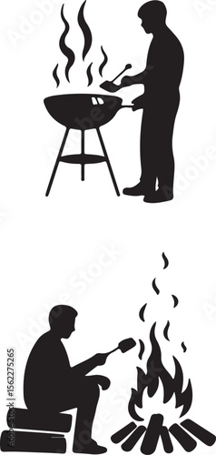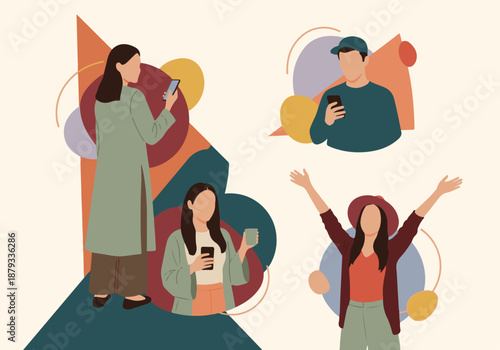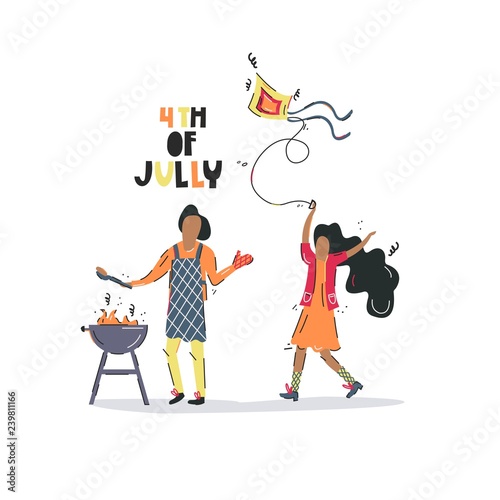 Векторная иллюстрация японской кухни. Крошечные персонажи поливают соевым соусом огромные суши нигири с лососем сверху, держат в руках палочки для еды, миску с пастой васаби. Традиционная азиатская кухня, суши-бар, ресторан
