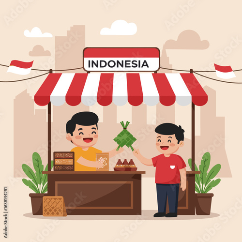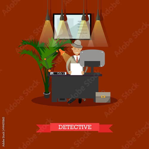 Векторная иллюстрация ювелира, стоящего на витрине ювелирных изделий. Ювелир в ювелирной мастерской или магазине концептуальный элемент дизайна в плоском стиле.