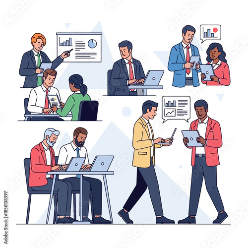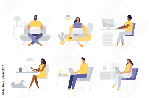 Набор мультяшных персонажей мужского и женского пола для поиска работы, векторная изолированная иллюстрация. Кандидаты на работу с газетой, резюме, ноутбуком, мобильным телефоном ищут работу. Трудоустройство, рекрутинг, карьера.