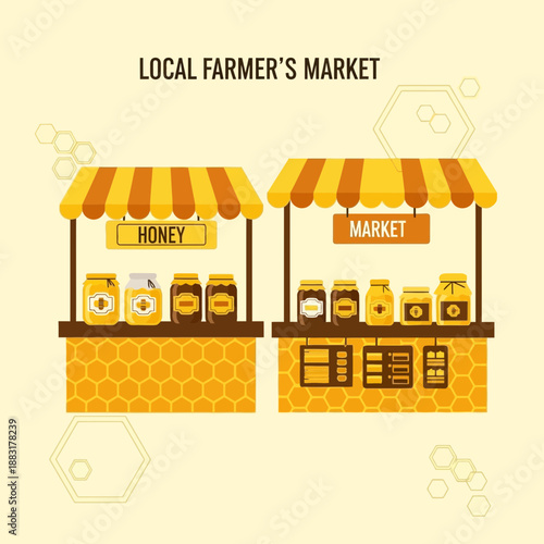 Магазин соков, плоская векторная иллюстрация. Яблочный сок в витрине. Продавец стоит у прилавка. Супермаркет, продуктовый магазин, отдел напитков. Розничный магазин малого бизнеса.