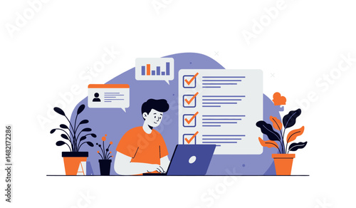 Векторная иллюстрация сотрудников, перемещающих карточки на доске от начала до конца бизнес-проекта, процесса. Гибкая методология канбана, командная работа, концепция разработки программного обеспечения для веб-баннера, веб-страницы.