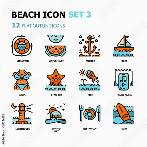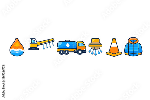 Набор значков для каякинга. Векторная иллюстрация снаряжения для водных видов спорта, защитного снаряжения и предметов для кемпинга, изолированных на белом фоне.