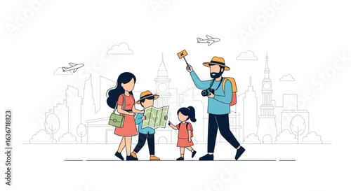 Ключ жизни, векторная иллюстрация дизайна в плоском стиле. Крошечные люди, держащие огромный ключ и книгу, стоя рядом с большой замочной скважиной с природой внутри нее. Открытие и изучение концепции природы.