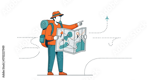Ключ жизни, векторная иллюстрация дизайна в плоском стиле. Крошечные люди, держащие огромный ключ и книгу, стоя рядом с большой замочной скважиной с природой внутри нее. Открытие и изучение концепции природы.