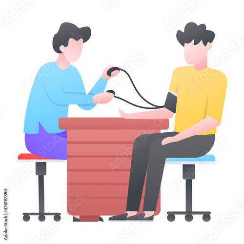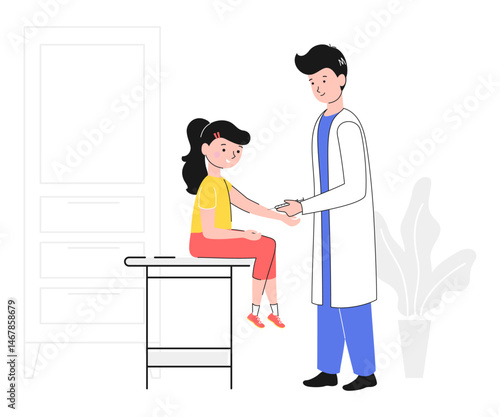 Осмотр ребенка. Врач-педиатр осматривает ребенка, сидящего на коленях у мамы, плоская векторная иллюстрация. Детское лекарство. Педиатрия.