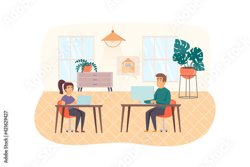 День рождения детей в мультикультурной семье. Векторная иллюстрация концепции международной семьи. Черный отец и белая мать с двумя смешанными детьми. Вечеринка по случаю дня рождения ребенка.