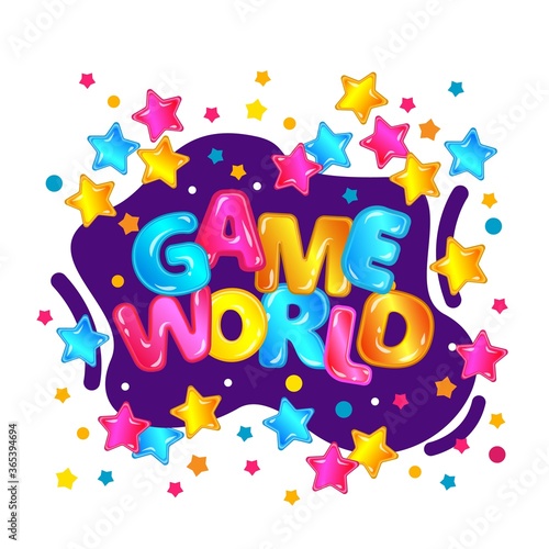 Векторный логотип детской вечеринки. Детская игровая зона для игр и празднования дня рождения. Эмблема игровой площадки для детей, выделенная на белом фоне