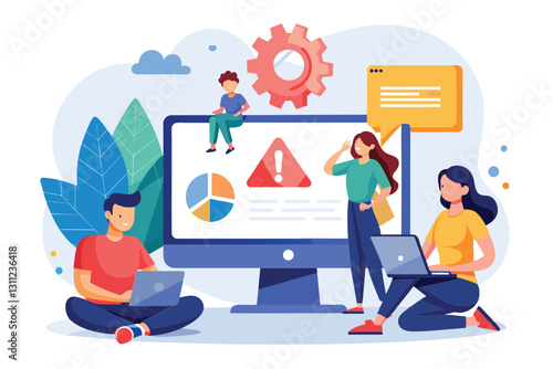Дети, изучающие языки с онлайн-учителем, плоская векторная иллюстрация. Урок английского языка, курс. Онлайн-образование, репетиторство, домашнее обучение, дистанционное обучение.