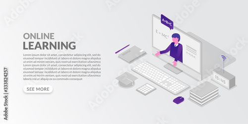 Шаблон веб-сайта целевой страницы дизайна кухни. Векторный изометрический настольный компьютер с 3D-моделями кухонной мебели и планом дома перед ним. Онлайн-концепция планирования интерьера.