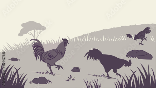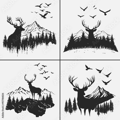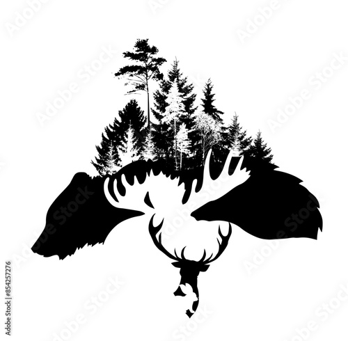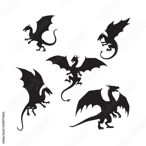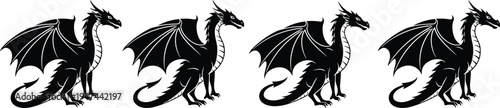 Векторная многослойная вырезанная из бумаги сказочная композиция в стиле ремесла средневекового рыцаря, сражающегося с силуэтами огромных драконов.