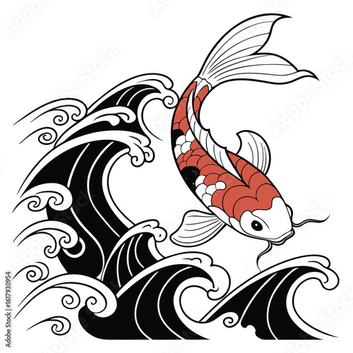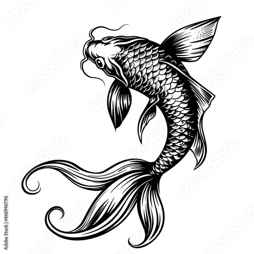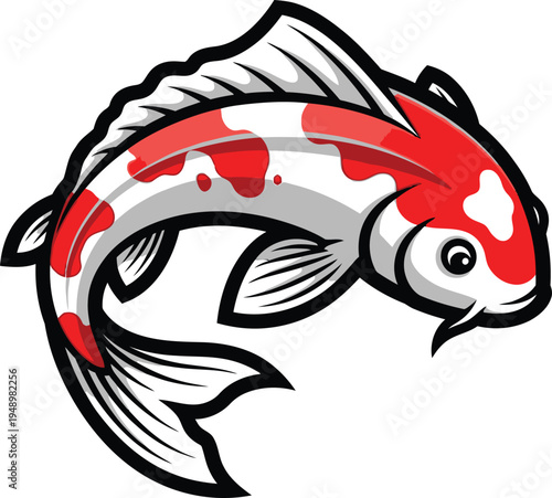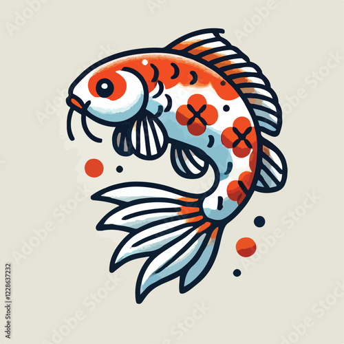 Векторный значок рыбы Кои с видом сверху, изолированный на белом фоне.