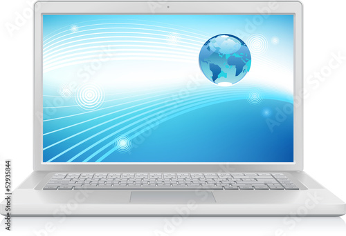 Векторный значок портативного компьютера на белом фоне. Экран-заставка монитора. Концепция интернет-технологий